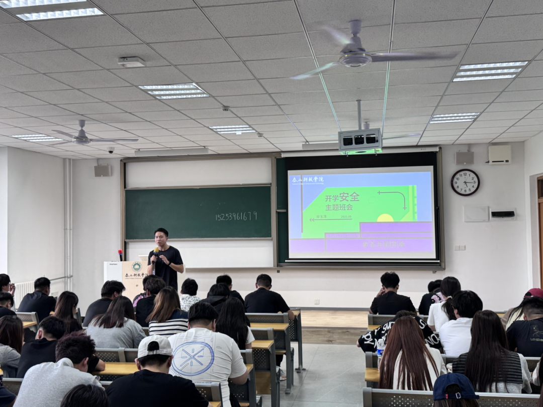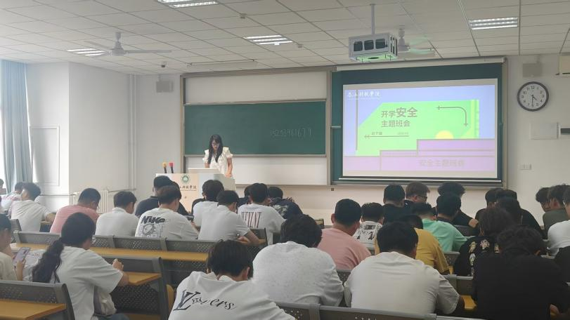 辅导员接铭倩为23级学生召开返校安全集中班会。班会围绕校园、交通、网络安全及宿舍用电规范等重点内容,结合典型案例强化学生风险防范意识。同时,讲解毕业年级学生在校期间学费缴纳、学风问题、校规校纪等方面应急处置流程。此外,提醒学生调整作息,积极投入新学期学习生活。本次班会提高了学生安全认知水平,为秋季学期管理工作奠定基础。