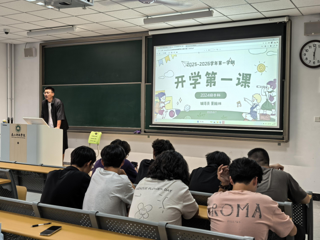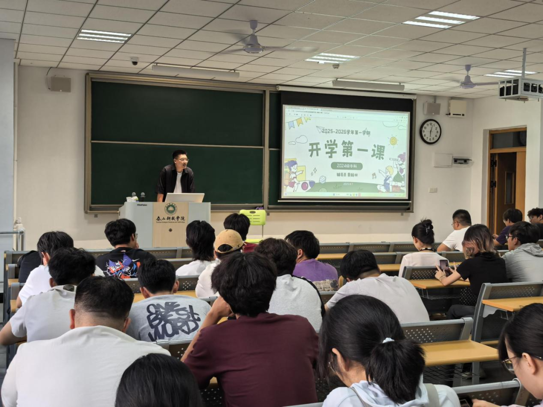 辅导员黄翰林老师在J2-213教室为建筑工程学院2024级全体本科生举办“开学第一课”主题教育活动。活动旨在引导新生明确目标、调整状态,投入新学习生活。黄老师先欢迎同学们返校,接着围绕“规划、适应、成长”三大主题阐释,结合专业特性与行业趋势,强调夯实基础、注重实践,鼓励大二起科学制定学习计划,还说明校园安全、纪律规范、心理健康等事项,提醒增强防范意识、保持乐观心态以适应新学期。活动内容丰富、秩序井然,学生反响热烈。此次“开学第一课”增强了新生归属感与责任感,为新学年学生管理工作奠基,推动学院学风建设与育人工作开展。