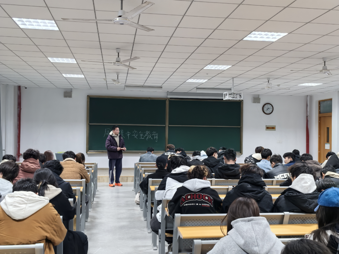 为确保大家度过平安的假期,辅导员毕玉泽在J3-403召开安全主题班会,强调以下几个问题,宿舍安全与卫生方面,离校前彻底清扫宿舍,清理垃圾,开窗通风,避免细菌滋生;留校同学每日整理内务,保持整洁。严禁在宿舍内饮酒、吸烟,杜绝明火及违规电器,消除火灾隐患,违者将严肃处理。在校纪律方面,假期留校同学务必遵守作息时间,严禁晚归(23:00后返校视为晚归)。夜间避免单独外出,注意保管个人财物,遇紧急情况第一时间联系辅导员或保卫处。假期注意事项,离校同学请锁好门窗、切断电源,贵重物品随身携带;出行选择正规交通工具,拒乘“黑车”,全程佩戴口罩做好防护。祭扫时遵守防火规定,倡导鲜花祭扫,严禁携带火种进入林区。信息一定畅通,全体同学每日关注班级群通知,留校生每晚21:00前在宿舍长群报平安。假期结束后按时返校,4月6日晚各班考勤核查。