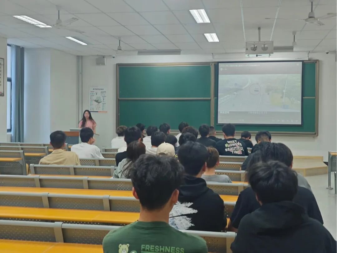 辅导员接铭倩为2023级学生开展校园内外交通安全教育课程。课程结合近期频现的校内外交通安全事故及学生出行、骑行、驾驶等日常需求展开,通过播放近年高校周边交通事故影像资料、室外模拟校园周边十字路口交通场景、分析外卖骑手与行人冲突案例等方式,直观呈现交通风险点。安全课后还重点组织班级学生签署了《交通安全承诺书》,后续在班级层面将持续开展“安全校园”系列活动。