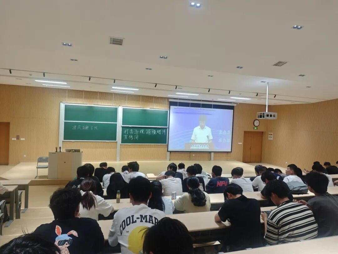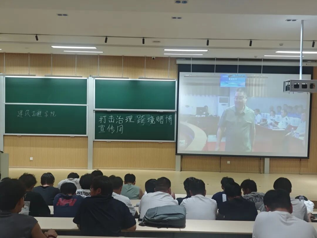 为深入贯彻和执行《山东省公安厅、山东省教育厅、中国人民银行山东省分行关于举办2025年山东省打击治理跨境赌博校园宣传周活动的通知》的核心要义,建筑工程学院于6月16日下午15:00,召集了百余名学生代表集中观看了“2025年山东省打击治理跨境赌博校园宣传周活动启动仪式”的线上直播,以期提高青年学生预防跨境赌博的意识与能力。
