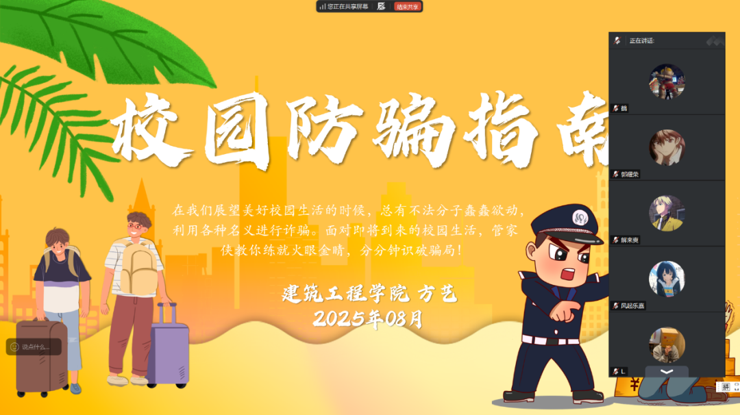 这场线上主题班会,涵盖了实用的安全知识,让同学们做好充足的开学准备来迎接新学期。接下来,建筑工程学院将持续做好安全保障工作,陪伴同学们安全成长、顺利前行。