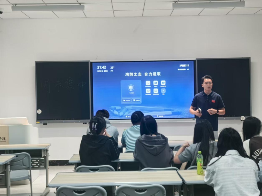 辅导员黄翰林召集智能建造技术与建筑工程技术专科全体新生开会,强调返校后宿舍卫生安全,加强校外住宿、晚归及未归情况核查,明确新生体检相关要求。