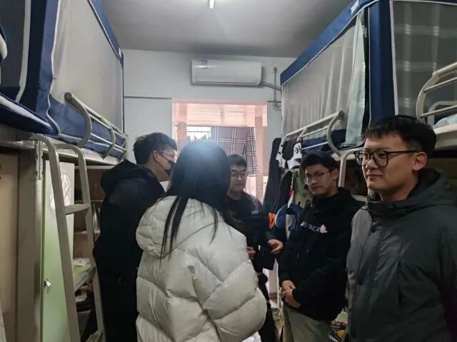 辅导员老师们了解同学目前在学习和生活中遇到的问题,并给予同学们解决问题的意见,提醒同学们新学期开学也要时刻防止电信诈骗,保护好自己的人身安全与钱财。在本次走访宿舍的过程当中,各辅导员深入寝室了解同学们寒假的生活,与同学们交流寒假在家的情况,同时,叮嘱同学们新学期已经到来,放平心态,去面临新的生活。