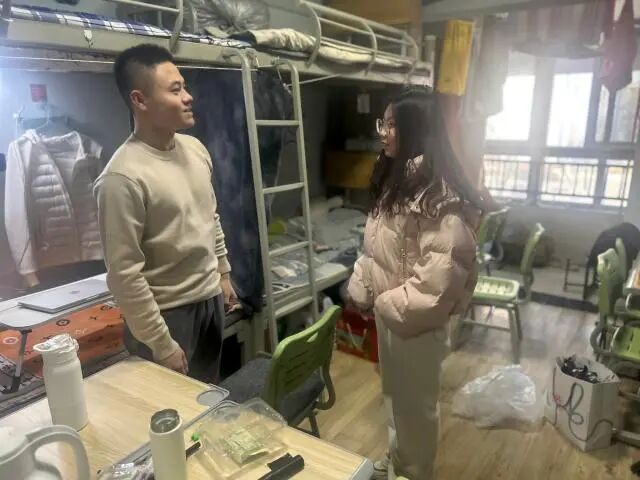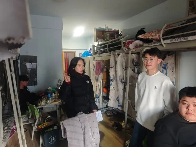 紧接着,查寝小组多路并进,全面覆盖至19栋学生宿舍楼,对育英书院宿舍、敢当书院宿舍、东岳书院宿舍、瞻言书院宿舍、九河书院宿舍、新言书院宿舍、汶阳书院宿舍,1587人进行了认真而细致的检查工作。在查寝过程中,辅导员们不仅悉心留意宿舍内的硬件设施是否完善、卫生状况是否达标,更以饱满的热情与学生进行互动交流,耐心倾听他们关于假期生活的点滴分享、新学期的学业规划以及当前面临的各种挑战,将学院的深切关怀与温暖之情切实传递到了每一位学生的心间。