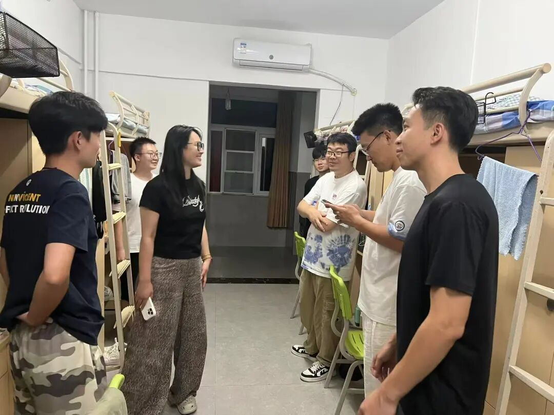 为深入了解新生入学适应情况,搭建师生沟通的“零距离”桥梁,帮助新生快速融入校园生活,9月14日晚,建筑工程学院副院长刘睿智带领全体新生辅导员开展新生入学后的首次集体查寝工作。从生活用品摆放指导到安全隐患排查,从学业规划交流到心理状态关怀,辅导员们用细致的服务与暖心的话语,为初入校园的新生们送上了“第一份家的温暖”。