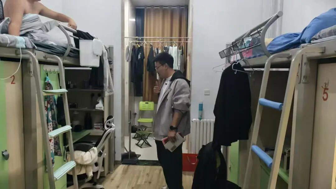 刘增静老师走访汶阳书院2023级男生宿舍,检查宿舍时,重点查看卫生、安全用电及门窗设施。整体情况良好,多数宿舍整洁,物品摆放有序,无违规大功率电器;对卫生较差宿舍,刘老师现场提整改意见并开展安全教育。此次检查排除隐患,强化学生安全意识与集体归属感,也体现学生良好的自理能力。