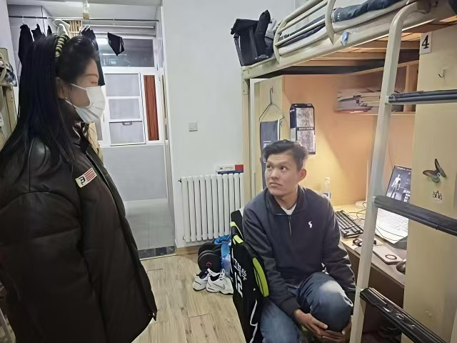 辅导员潘立婷老师深入学生宿舍楼,开展细致的走访检查工作。她针对违规电器使用、私拉乱接电线以及宿舍环境卫生等问题,逐间排查,逐项核实。同时,潘立婷老师还深入了解学生的近期状况,耐心倾听他们的心声;与同学们进行了亲切的交流,详细询问了他们的学习进展和生活需求。潘立婷老师特意询问了毕业生们的求职进展,关心大家是否已确定就业单位、签订就业协议,叮嘱尚未找到工作的同学不要焦虑。她还详细了解了同学们的离校计划,确认大家的离校时间、返程安排,提醒大家提前做好宿舍物品整理,注意返程安全,有任何困难及时沟通。