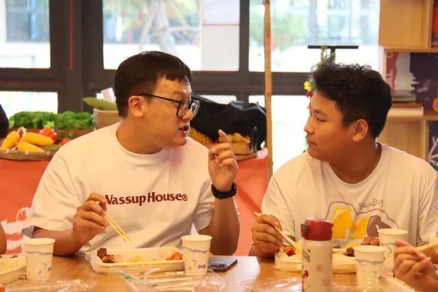 接下来在主持人那厚重感性的声音下开始了共膳环节。期间刘院长和各位老师对参加共膳活动的学习委员代表进行了亲切的交流,同时对于同学们提出的问题进行解惑。有的同学提出期末考试怎么复习;有的同学对以后就业感到迷茫;有的同学不知道怎么调节比赛和上课的时间。经过院长和老师们的解答后,同学们都茅塞顿开,更加清楚自己今后的规划。