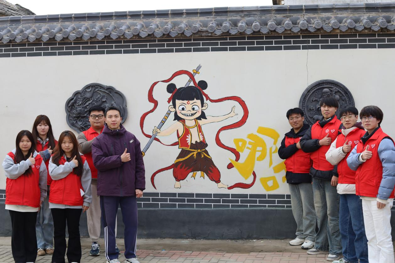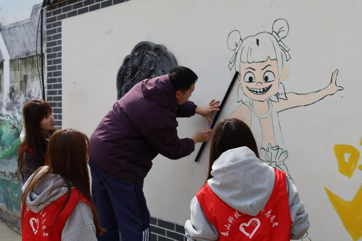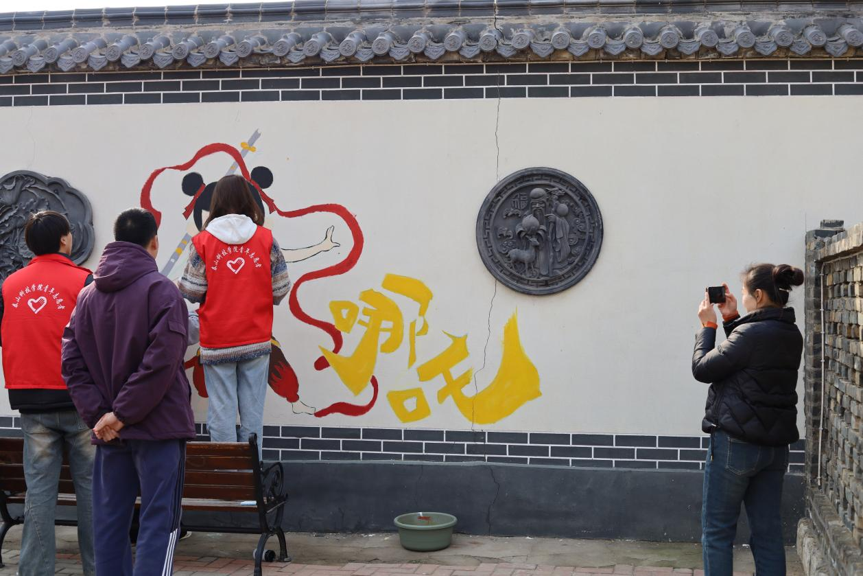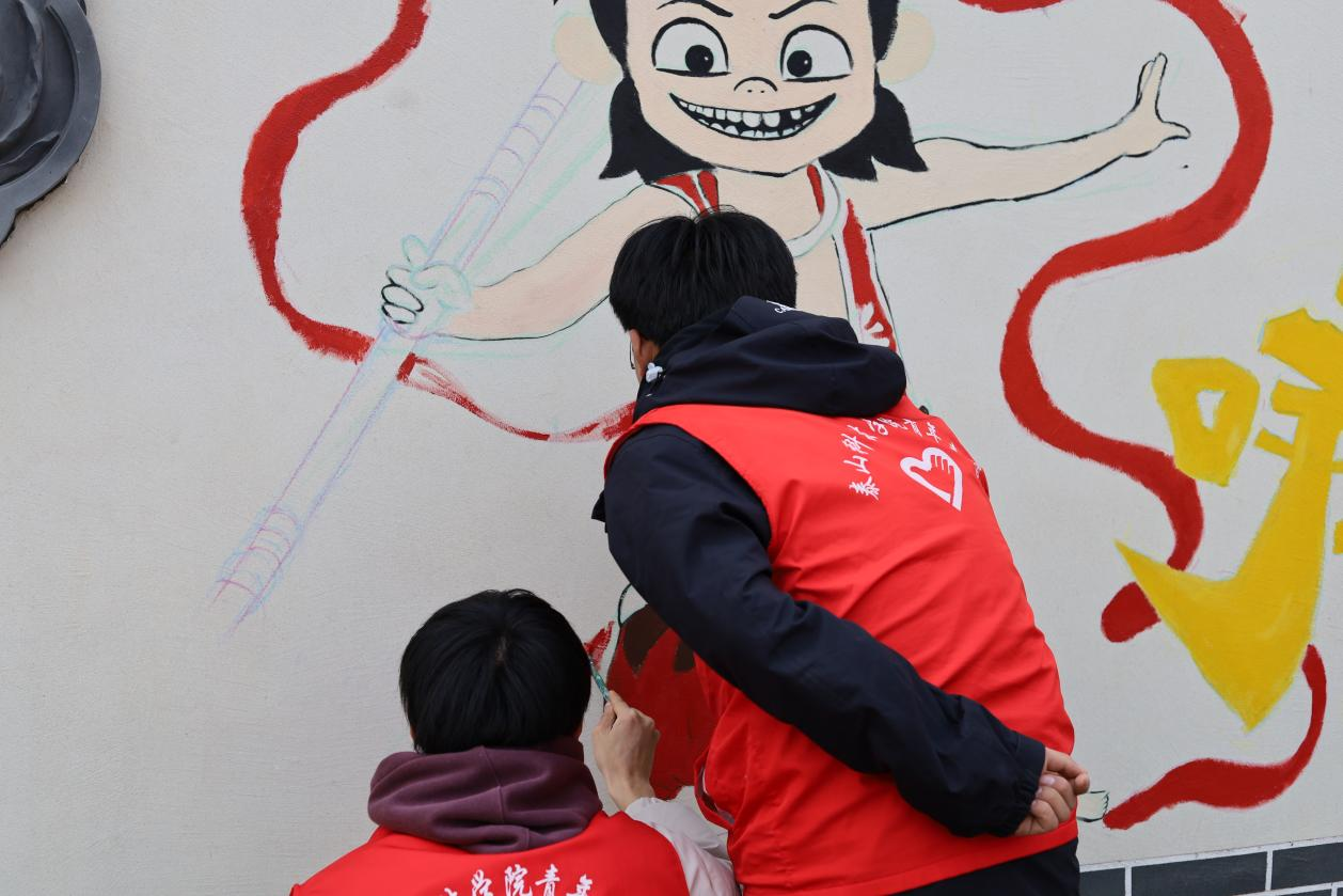 活动当天,志愿者们满怀热情地带着绘画工具来到王林坡村。面对那面略显陈旧的空白墙壁,志愿者们虽然稍显紧张,但一想到要将勇敢正义的哪吒形象呈现出来,便立刻充满了干劲。一位小朋友睁着大眼睛好奇地问志愿者:“哥哥,哪吒真的会出现在这面墙上吗?”看着孩子充满期待的眼神,志愿者们的决心愈发坚定。