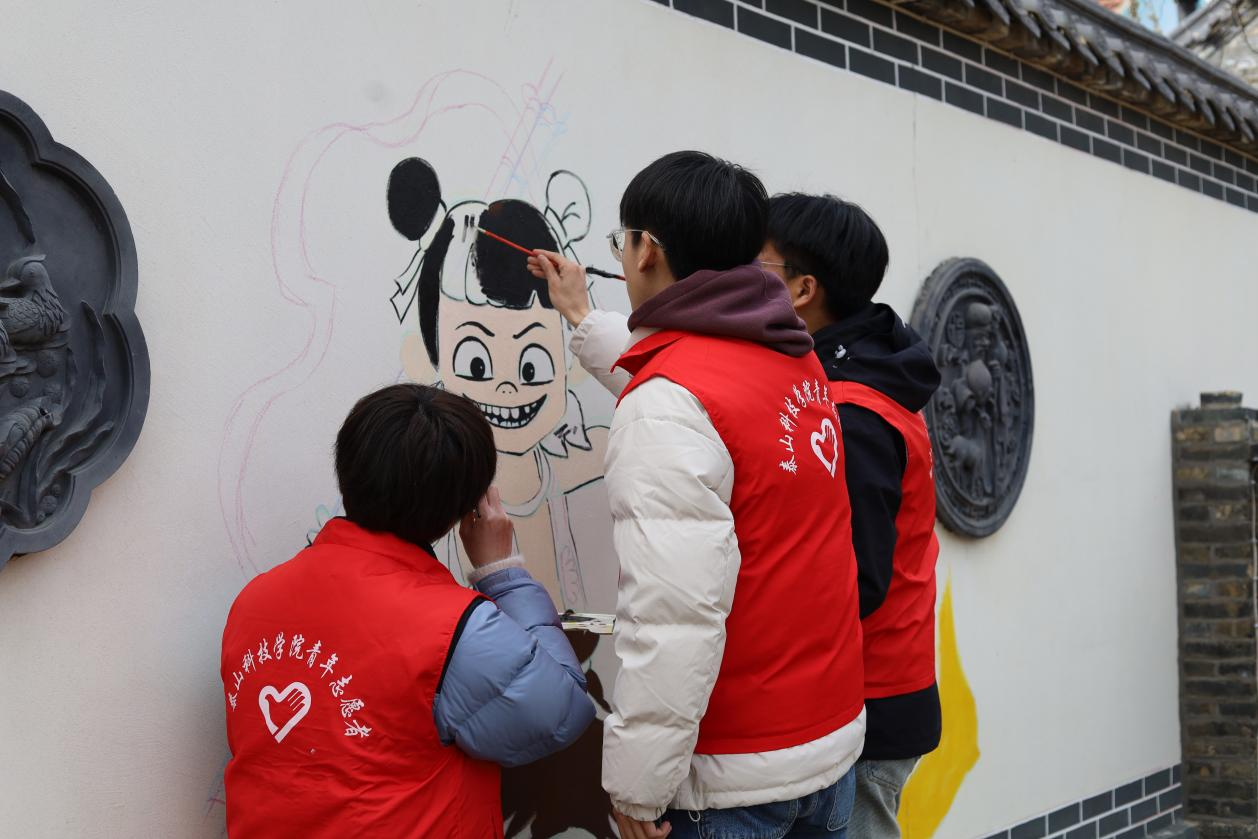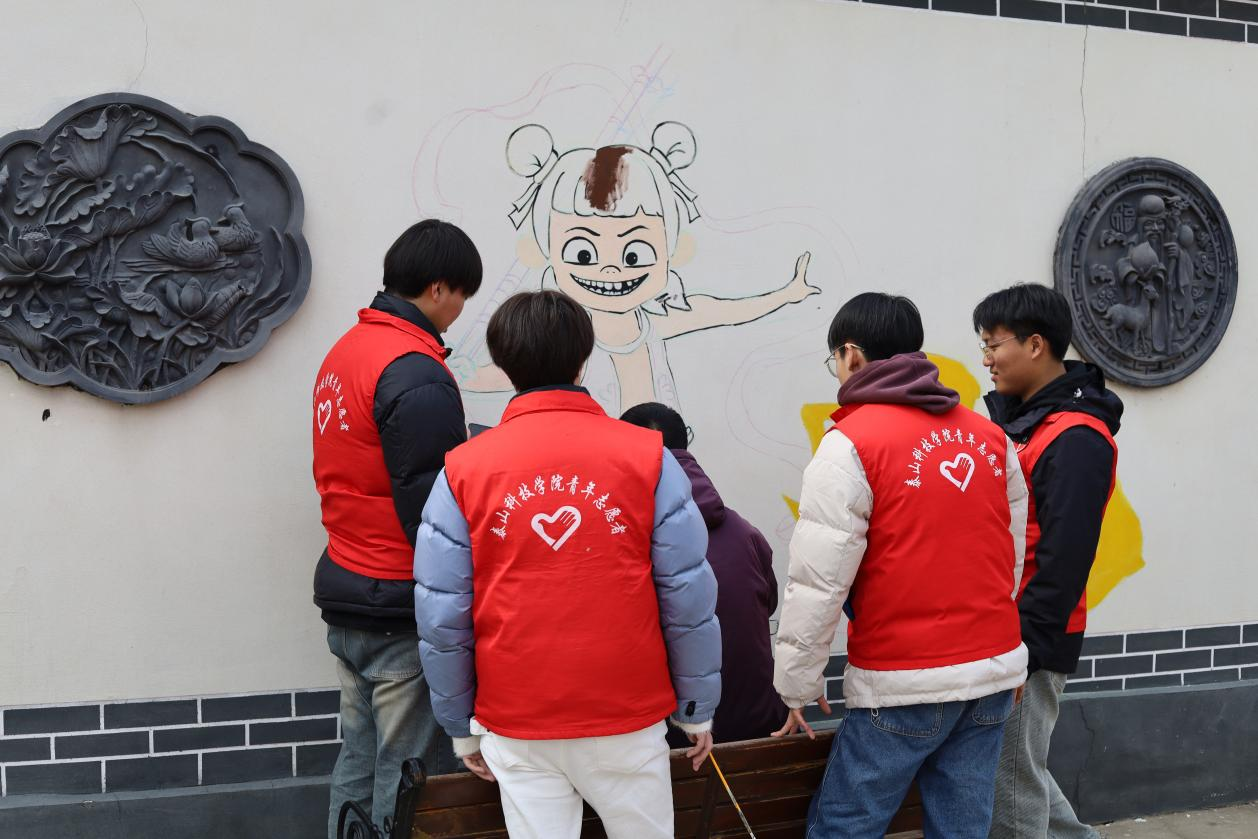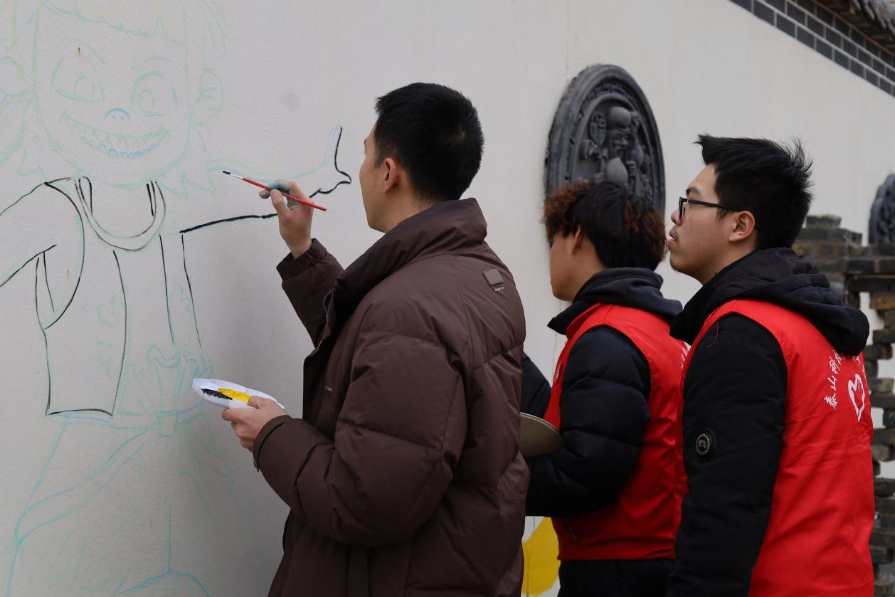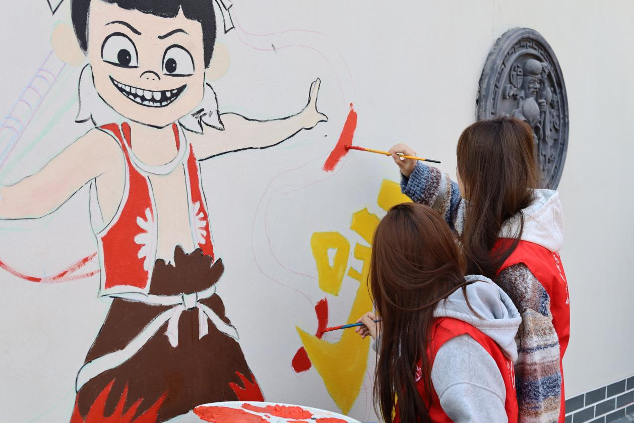 活动当天,志愿者们满怀热情地带着绘画工具来到王林坡村。面对那面略显陈旧的空白墙壁,志愿者们虽然稍显紧张,但一想到要将勇敢正义的哪吒形象呈现出来,便立刻充满了干劲。一位小朋友睁着大眼睛好奇地问志愿者:“哥哥,哪吒真的会出现在这面墙上吗?”看着孩子充满期待的眼神,志愿者们的决心愈发坚定。
