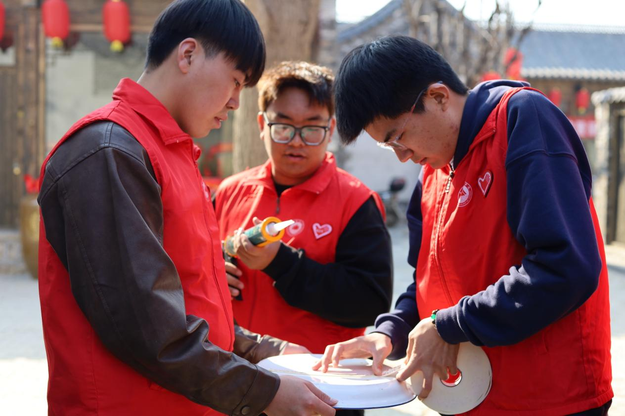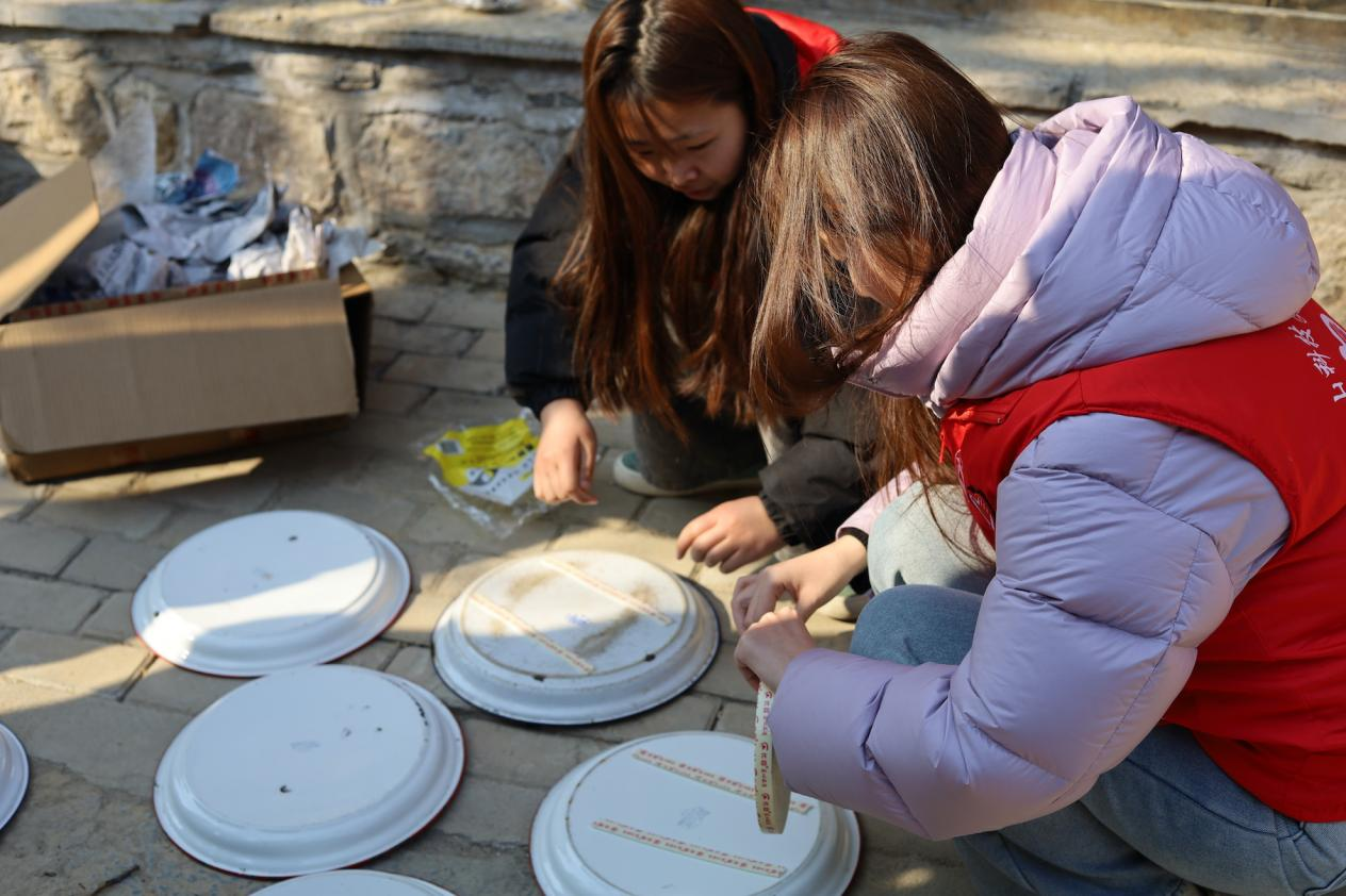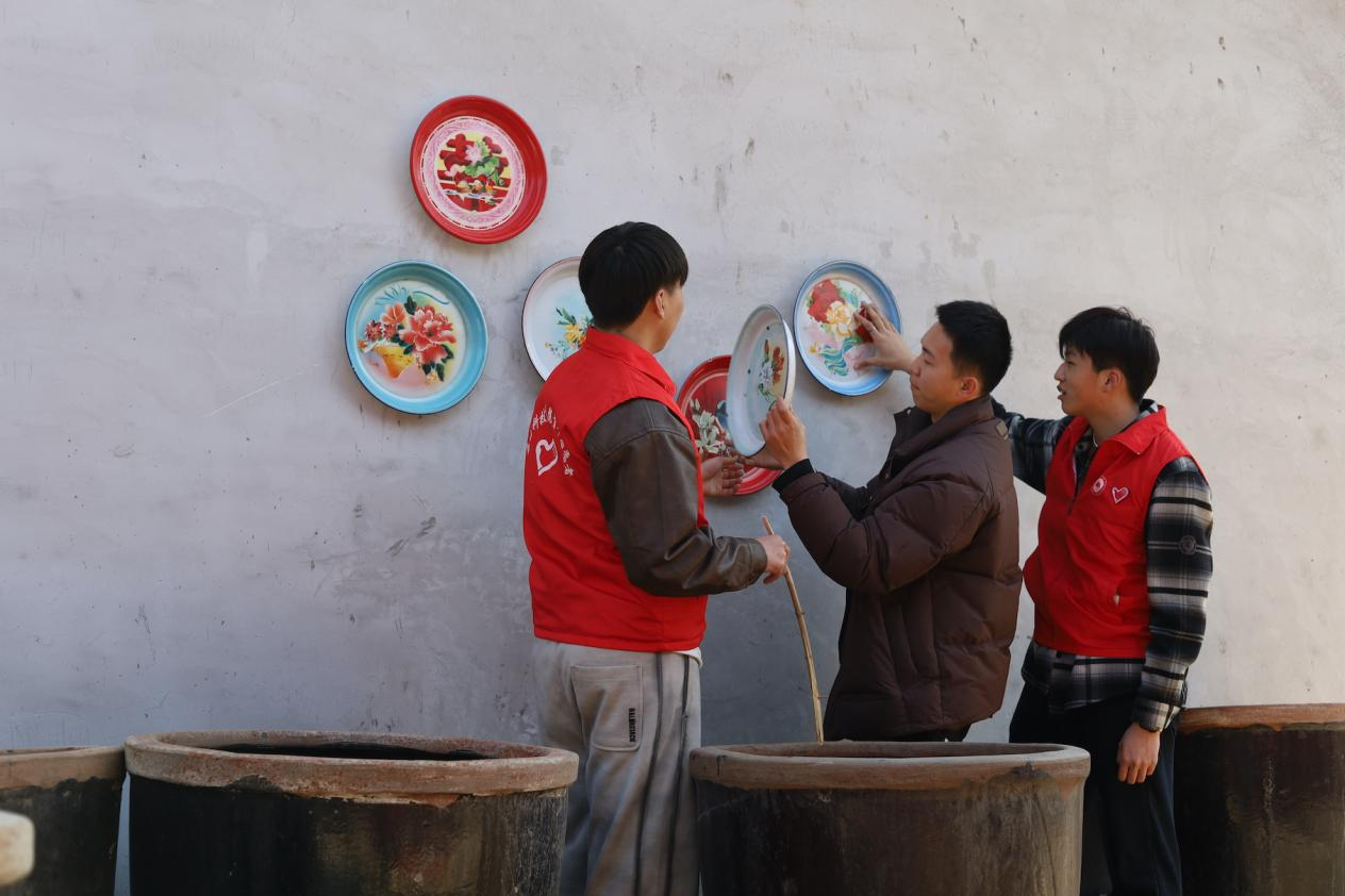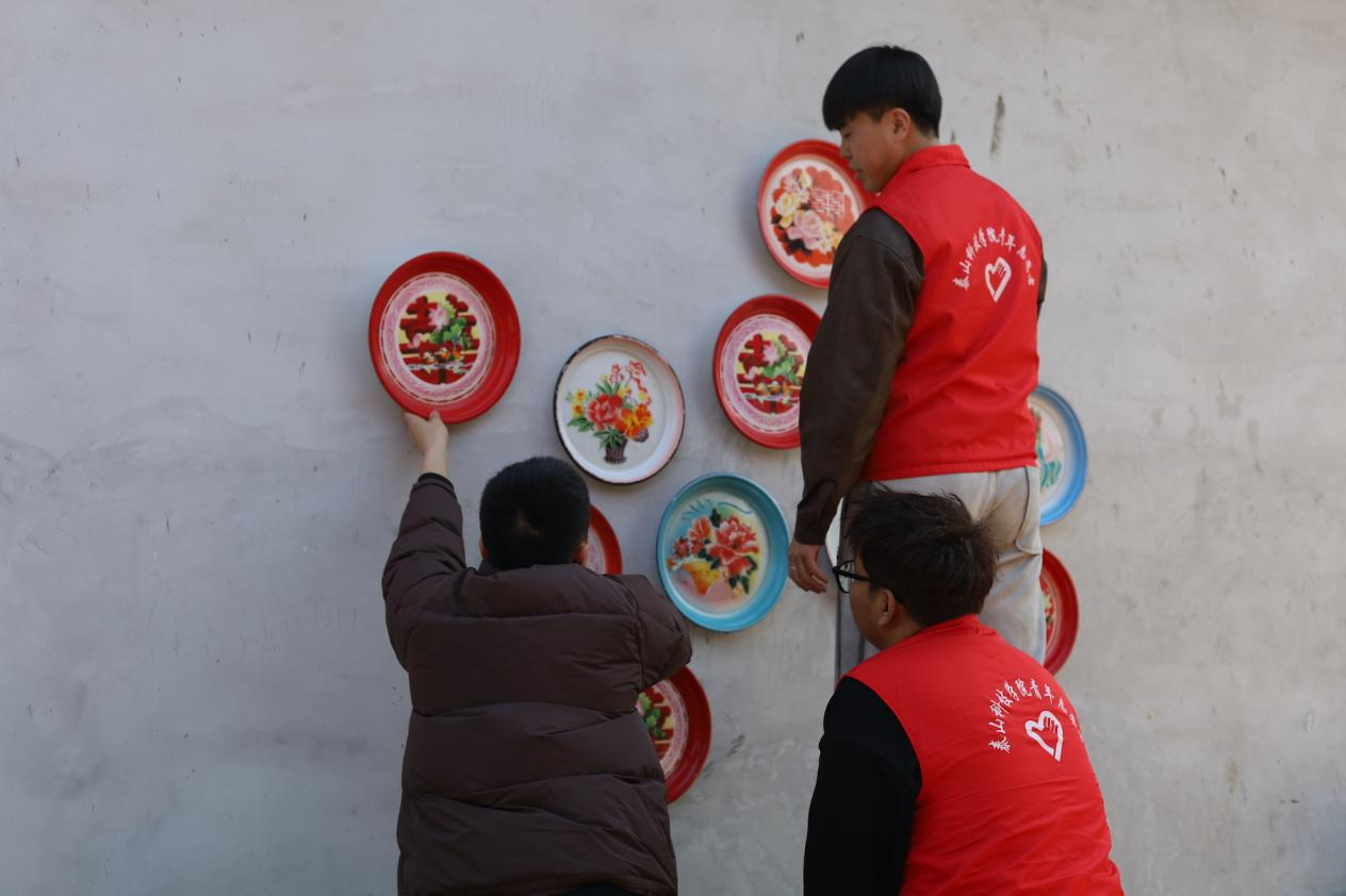 为了把墙装饰的更漂亮,志愿者们早早地来到现场,把搪瓷盘擦干净。志愿者们小心翼翼地将一个个搪瓷盘按照设计图案摆放在墙面上,再用热熔胶固定,确保图案的完整性和准确性,就这样一个个搪瓷盘成功上墙。随着时间的推移,在志愿者们齐心协力下一面原本单调的墙面逐渐被搪瓷盘图案填满。瓷盘上的图案更是栩栩如生,色彩鲜艳夺目,仿佛将人们带回了那个充满烟火气的旧时光,成为乡村一到靓丽的风景线。