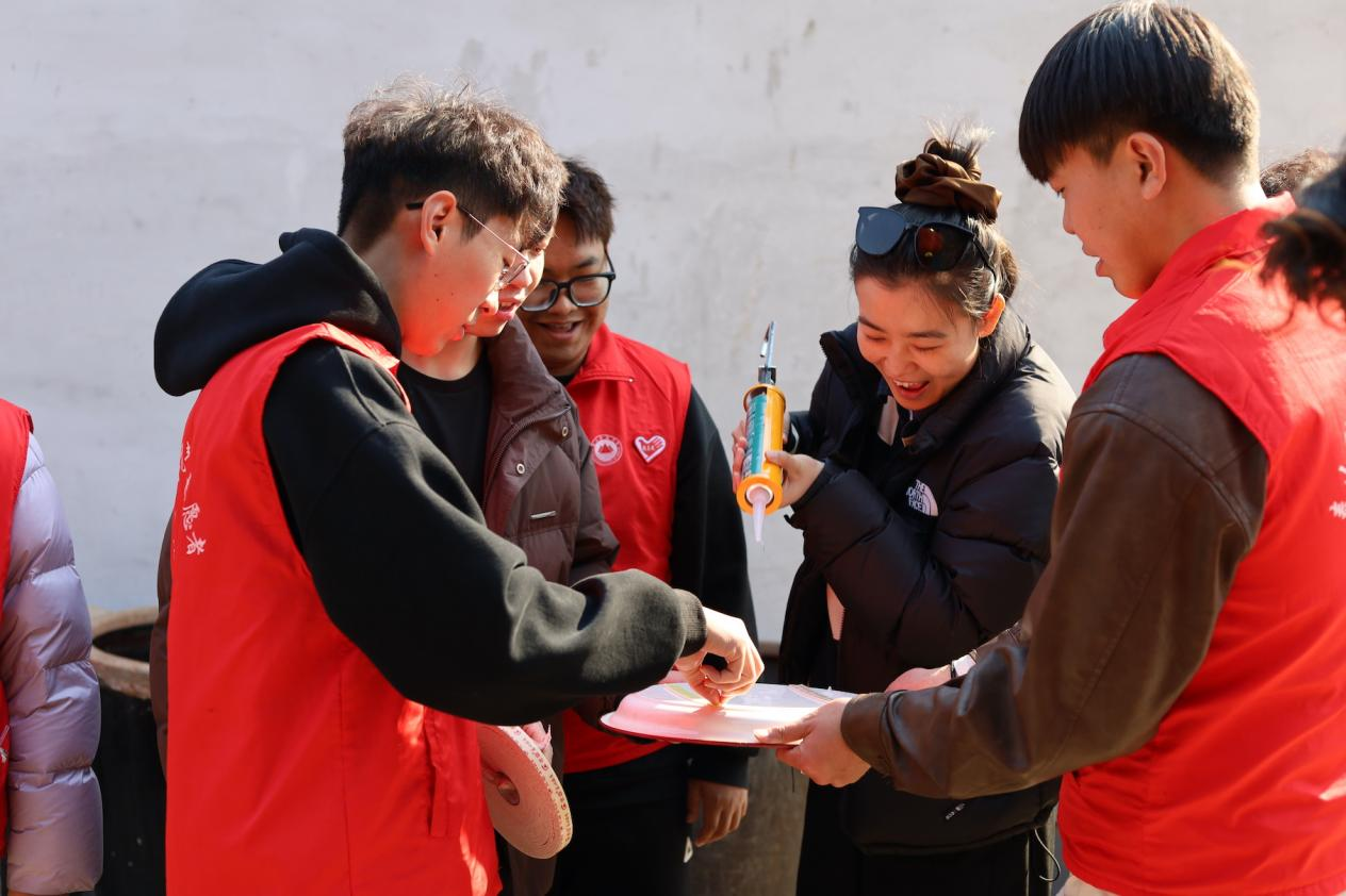 在这活动期间,周围正好有研学的孩子们,志愿者带来了用扎染制作的冰箱贴,一一展示给孩子们,亲切询问:“好不好看”?孩子们眼睛放光,兴奋点头,满是欢声笑语。志愿者耐心地为孩子们讲解制作过程。这些小小的互动不仅丰富了孩子们的课余时间,更在他们心中种下温暖的种子。这可以让孩子们感受到社会的关爱,也展现了志愿者无私奉献的精神,传递着满满的正能量 。