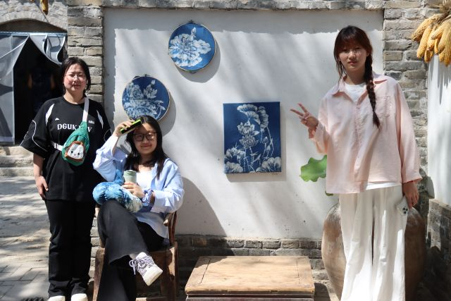 沿着青石板路缓步而行,志愿者们精心绘制的哪吒墙绘依然神采飞扬,青花瓷盘拼成的"时光之墙"折射出千年陶瓷文化的璀璨,非遗扎染工坊的蓝白织物随风轻舞,方言墙上镌刻着乡音乡情的温度,文创商店里陈列的王林坡主题手作,处处彰显着艺术与乡土的完美交融。自2022年起,建工志愿者团队以"设计赋能乡村振兴"为理念,以实体化建设为核心,先后打造了“扎染工坊”、“泉香书屋”两大实体空间,文创商店商用性地点。这些文旅新地标的诞生,都凝结着建工学子持续三年的匠心,志愿者们用专业技能为古村注入了青春动能。