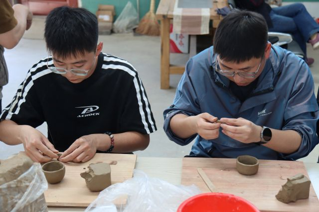 与之遥相呼应的泥塑工坊内,另一群志愿者正在非遗传承人的指导下,将温润的陶土塑造成形态各异的茶器。志愿者韩钦跃捧着自制的"斗拱纹"茶杯兴奋地说:"我们把古建元素融入现代器皿,希望让传统文化在生活美学中焕发新生。"这种创新精神,正是建工团队打造旅游街区的核心密码——他们设计的"流动式文创市集"正在逐步为村集体带来增收。