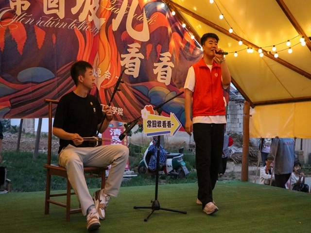 当最后一抹晚霞沉入黛色山峦,"常回家看看"篝火晚会的火焰冲天而起,橙红色的光浪如同温柔的潮水,瞬间漫过青瓦白墙,将整个王林坡村染成暖融融的琥珀色。志愿者们怀揣着满心的热忱,纷纷展露才艺,悠扬的歌声在夜空中飘荡,灵动的舞姿与跃动的火苗相映成趣。
