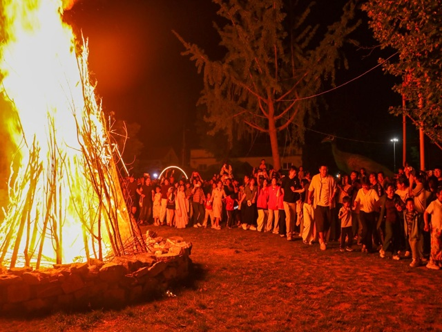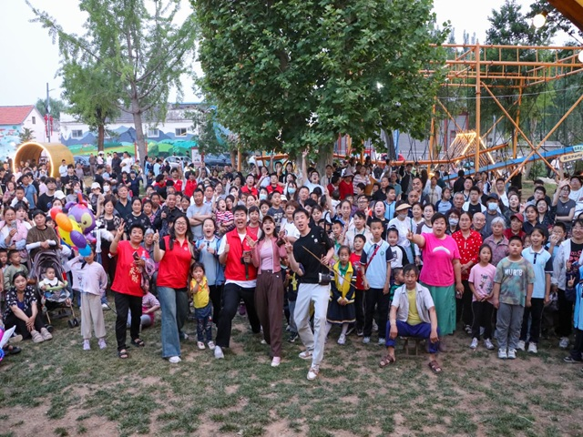 羞涩的小朋友们起初躲在大人身后,亮晶晶的眼睛好奇张望,不一会儿就被欢快的氛围感染,红扑扑的脸蛋上绽放出灿烂的笑容,主动踮着脚尖拉住志愿者的手,脆生生地喊着"哥哥姐姐"。人群一圈圈奔跑时,志愿者稳稳护着孩童摇晃的身影,村民们默契地为奔跑的孩子让出安全的空隙。熊熊燃烧的篝火噼里啪啦地跳跃着,将欢声笑语与悠扬歌声送上夜空,火光映照着每个人幸福的面庞,这一刻,不分彼此的叮嘱与关怀在火光中流淌,志愿者与村民早已成为血脉相连的一家人,让这份镌刻着温暖与牵挂的情谊,在初夏的晚风里酿成一坛愈久弥香的亲情陈酿。