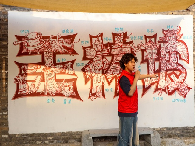 转过王林坡的小巷,一面色彩鲜艳的墙绘映入眼帘,“王林坡”三个大字苍劲有力,周围点缀着灵动的图案,这是不久前志愿者们用画笔精心绘制的成果。阳光洒在墙面上,为墙绘镀上一层金色的光晕,也照亮了同学们眼中的兴奋与感动。大家纷纷驻足,被这份充满创意与温情的作品所吸引。他们或单人自拍,将自己的笑容与墙绘定格;或三五成群,合影留念,相互分享着拍摄的照片,谈论着墙绘背后的故事,仿佛能透过色彩斑斓的画面。这面墙绘不仅是一处打卡胜地,更像是一座桥梁,传递着同学们对王林坡不变的情谊。