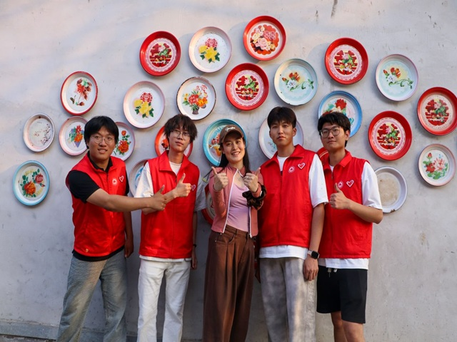 王林坡一处醒目的墙面,布满了色彩斑斓的瓷盘,这里便是承载着无数回忆的瓷盘墙体验点。同学们手持挑选好的瓷盘,拿起胶水,小心翼翼地将瓷盘贴在墙上。大家一边粘贴,一边互相交流着对王林坡的感受与祝福。“希望王林坡越来越好!”“我们也参与到王林坡的建设啦!”一句句真挚的话语,随着瓷盘的固定,深深印刻在了这面墙上。每一块瓷盘,都是同学们在这里留下的独特印记,它们汇聚在一起,成为了王林坡记忆长河中璀璨的浪花,也让同学们与这片土地有了更深的羁绊。