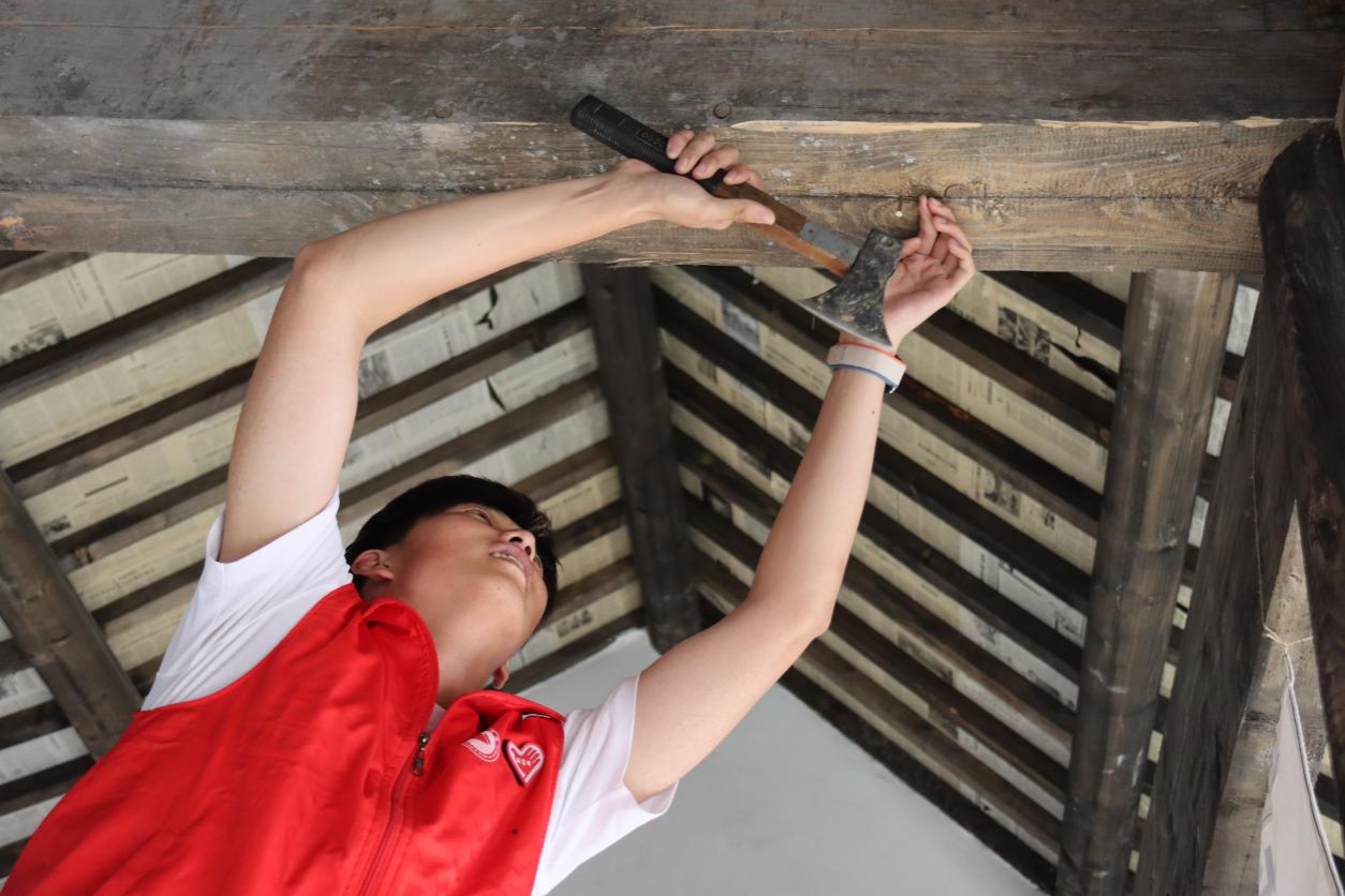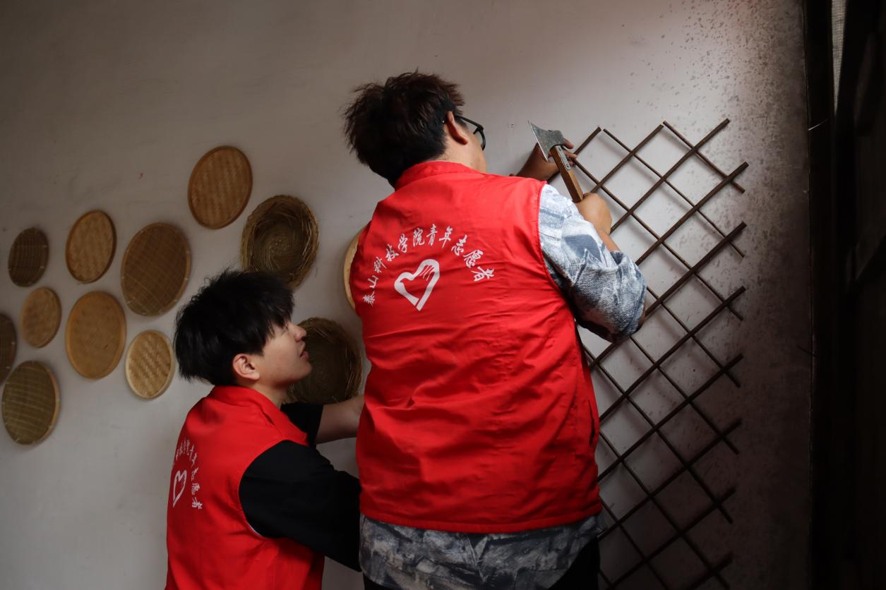 "谁说古村改造只能灰头土脸?"5月19日-21日,这群身手持绘图板、激光测距仪的青年志愿者,在王林坡村开启"硬核改造计划"。他们祭出建筑制图、空间营造等专业大招,硬是把文创商店外立面改造成专属王林坡特色的"3D文化密码"。