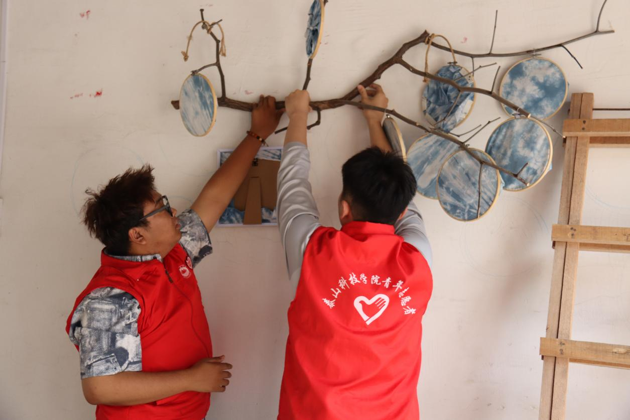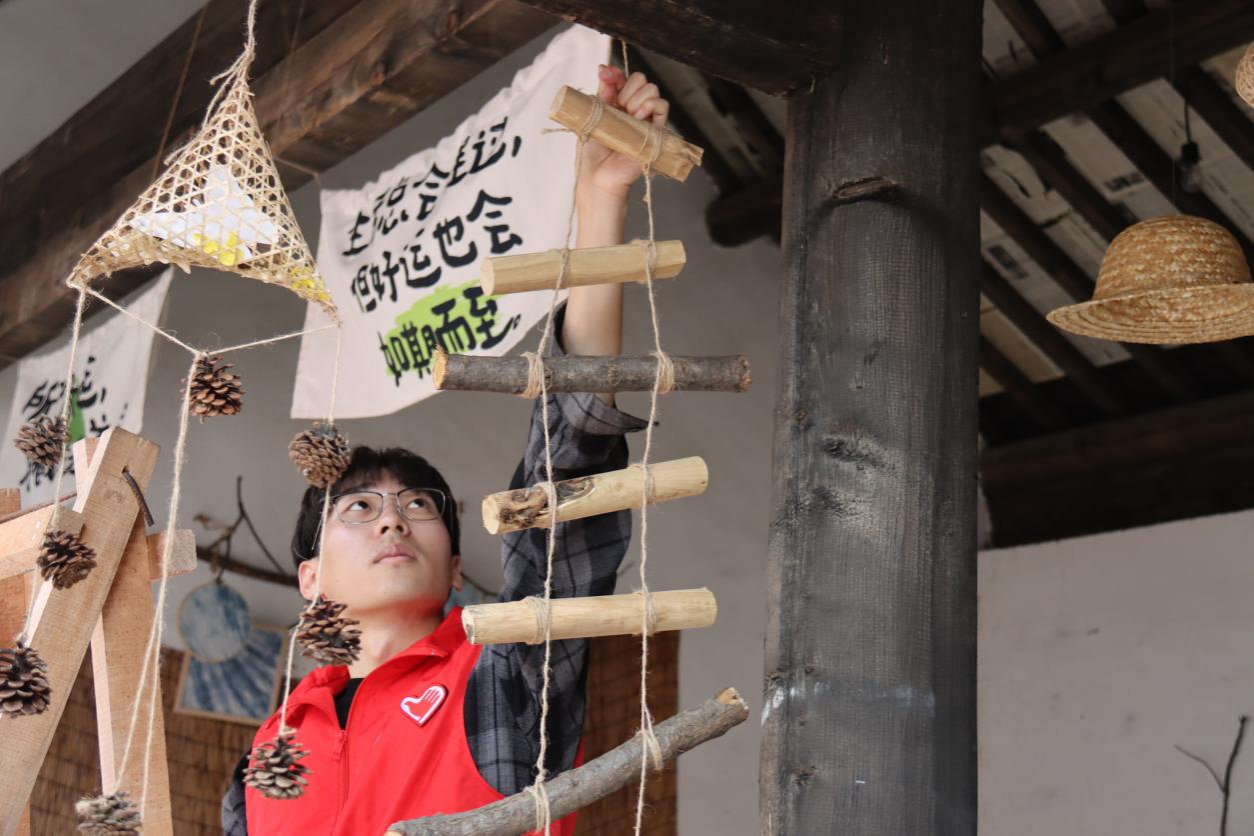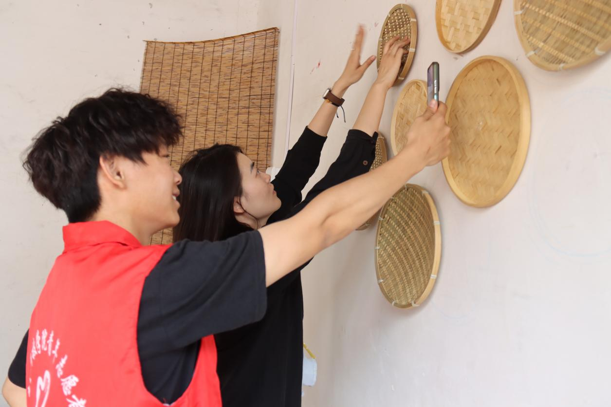 靛蓝扎染撞色夯土墙、木质竹编立体墙、非遗冰箱贴...志愿者们用建筑美学玩转空间魔法。据村委透露,游客对文创商店十分期待,客流量翻倍将会为村集体增收近2万元,"现在连城里人都来打卡我们'王林坡红'!"
