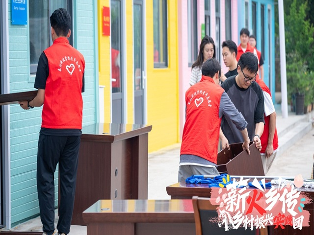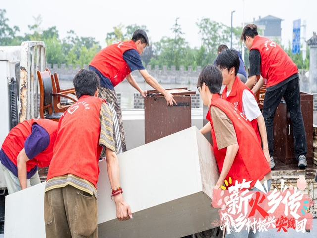 团队成员们迅速行动起来,在雨中分工协作,干劲十足。男生们凭借力气优势,两三人一组抬起沉重的实木桌柜,粗重的喘息声在潮湿的空气里回荡;女生们则专注于清理桌椅与杂物,她们擦拭桌子上的蜘蛛网,弯腰清理积灰的椅面,即使雨水打湿了志愿服也浑然不觉。清理完大件家具后,又拿起扫帚与拖把,将屋内陈年的灰尘一扫而空,有人踩着湿漉漉的鞋子反复拖地,直到地面映出清晰的倒影。