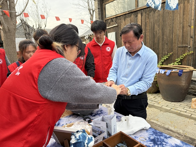 值得一提的是,此次活动中,正好前来王林坡调研的省领导同志也参与其中,与游客们共同体验了扎染制作的全过程。王林坡扎染工坊由建筑工程学院倾力打造,如今已成为非遗技艺传承的重要实践基地。这次活动让非遗技艺变得可触可感,也为王林坡这样的传统村落带来了新的生机与活力。