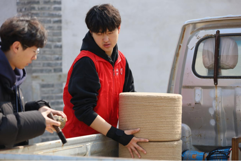 二月的最后一天,建筑工程学院的志愿者们联合敢当书院、非遗研究中心与指导老师一同前往王林坡,共同为王林坡的实体化工坊带来了一场特殊的装饰改造。这次装饰为古朴的工坊注入了新的活力,更搭建起非遗文化与现代生活相融合的桥梁,吸引更多游客前来体验,感受文创带来的文化气息。当老木梁邂逅泰科文创,以“空间再造+文化解码”的创新模式,对传统非遗工坊展开沉浸式改造,让老宅变身为日均接待超百次的文创工坊。