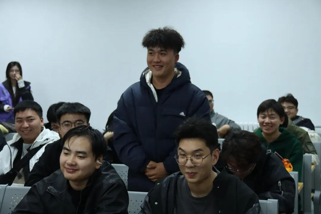 同学们被学姐的演讲深深吸引,当抛出“大家对雷军有什么了解”,“你从雷军身上学到了什么”等问题,教室内便立刻响起热烈回应。来自土木工程(专升本)的王超冉同学率先举起手来站起来说:“我知道雷军是小米的创始人,而且听说他之前做过软件,后来才跨界做硬件,创业过程也不是一帆风顺,这点很让人佩服的。”紧接着另一位同学踊跃发言:“我从他身上学到‘坚持’吧!他40岁还敢跨界做手机。”学姐也认真倾听并给出了肯定。