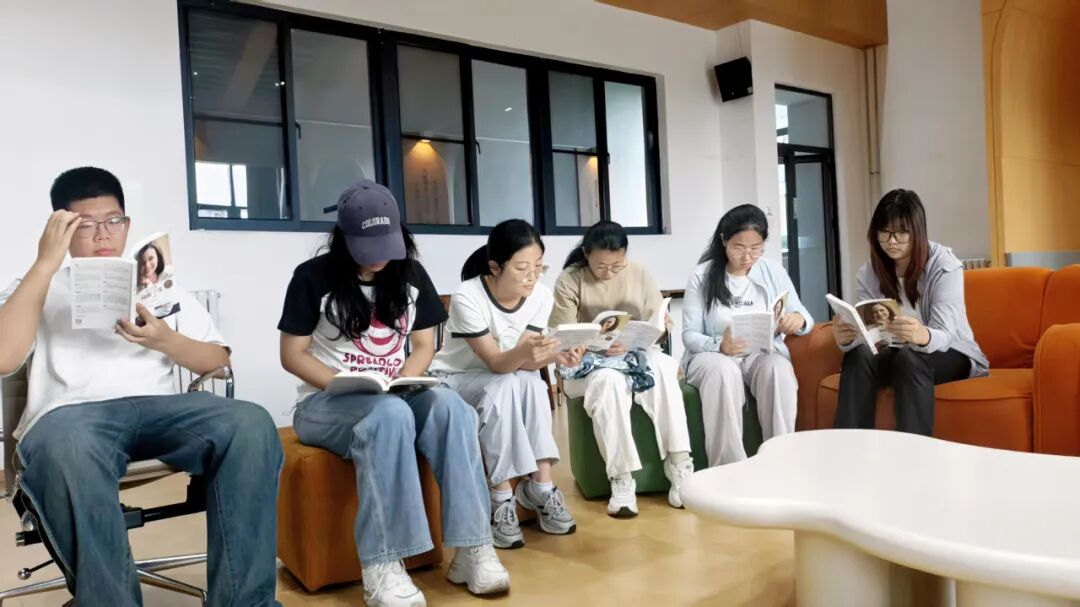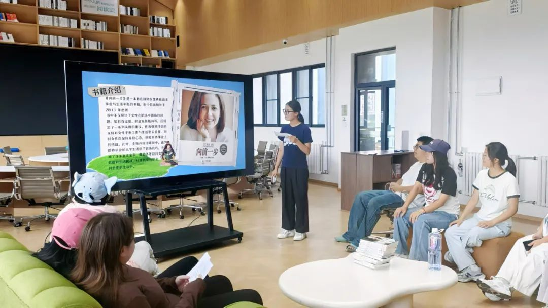 在主持人的引导下,同学们专注阅读《向前一步》沉浸在书中积极进取的思想世界。阅读结束后,分享环节成为思想交锋的舞台,同学们纷纷畅谈印象深刻的语句,“女性(及所有追梦者)不该被‘自我怀疑’困住”等观点引发热烈讨论,字里行间的力量正悄然转化为内心的勇气。