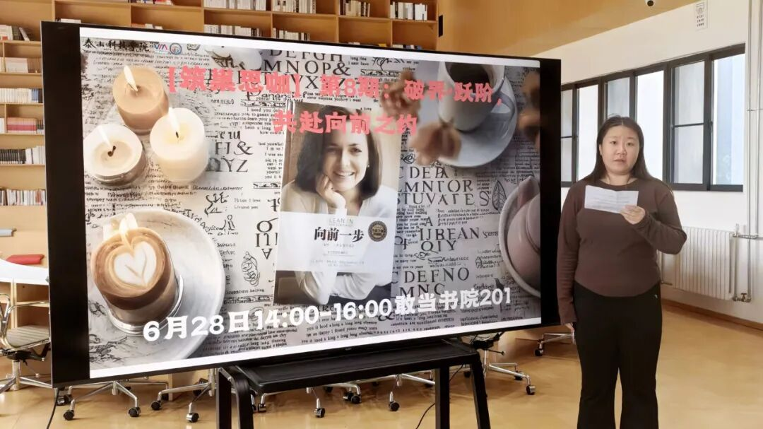 翻开书页,在来自敢当书院/建筑工程学院的主持人赵嘉琪充满感染力的开场中拉开帷幕。她以当代大学生在学业、职业与个人成长中“不敢突破”的普遍困境切入,迅速引发在场同学的共鸣。随后,来自海右书院/建筑工程学院的张恭如带来《向前一步》的深度分享,结合谢丽尔·桑德伯格的自身经历与大量案例,生动诠释了“打破内心束缚,勇敢向前一步”的精神内核,为同学们打开了主动突破的认知大门。